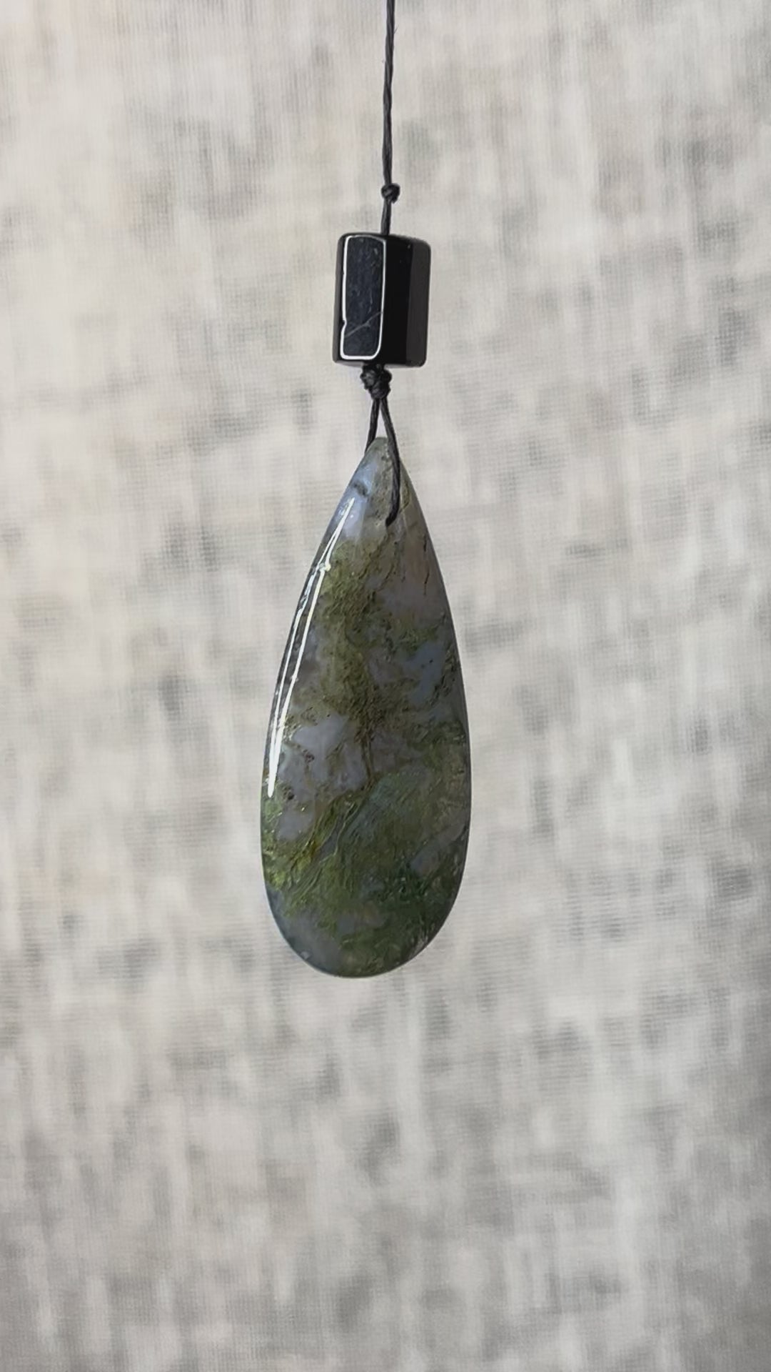 🌿 Moss Agate (main pendant) - new beginnings and nature's abundance. Traditionally believed to refresh the soul, attract prosperity, and connect you deeply to earth's nurturing energy. This thin drop piece is especially magical - when light shines through, you can see the mossy garden within. Known for encouraging growth in all areas and grounding you in nature's patient rhythms.